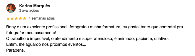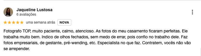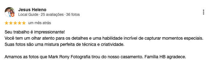 Com 10 anos de experiência e mais de 900 eventos registrados, acredito que cada clique precisa refletir a essência de quem está sendo fotografado. Mais que fotos bonitas, entrego emoção em cada imagem.